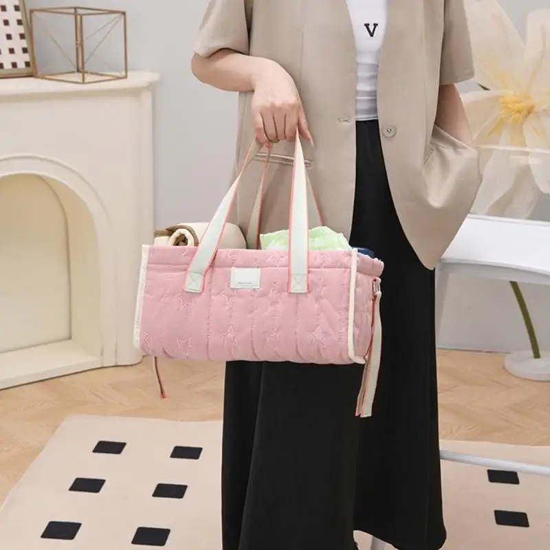 Multi-compartment design: The interior adopts a scientific zoning layout, including multiple compartments of different sizes, which facilitate the classification and storage of baby products such as diapers, wet wipes, and bottles in an orderly manner.